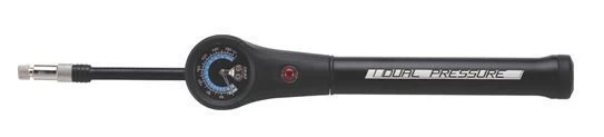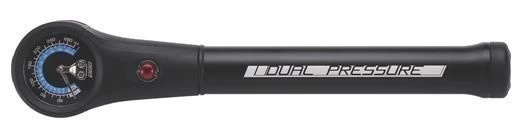 De DualPressure past op Presta, Schrader en Dunlop ventielen. Hij pompt tot 21 bar/300 psi en dat is makkelijk afleesbaar op de analoge manometer. Knipper met je ogen en je bent alweer op weg! Onze DualPressure biedt twee pompen in één. De unieke eigenschap van deze pomp zit in de speciale knop aan de onderkant van de schacht. Deze schakelaar reguleert tussen hoog volume en hoge druk, afhankelijk wat je nodig hebt voor je banden of je vering.