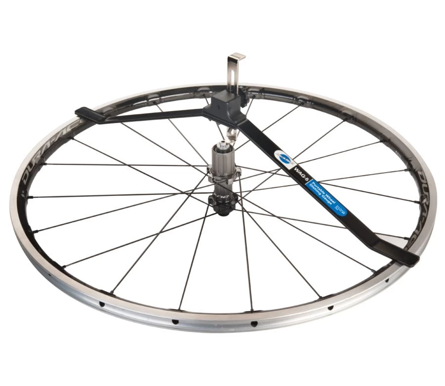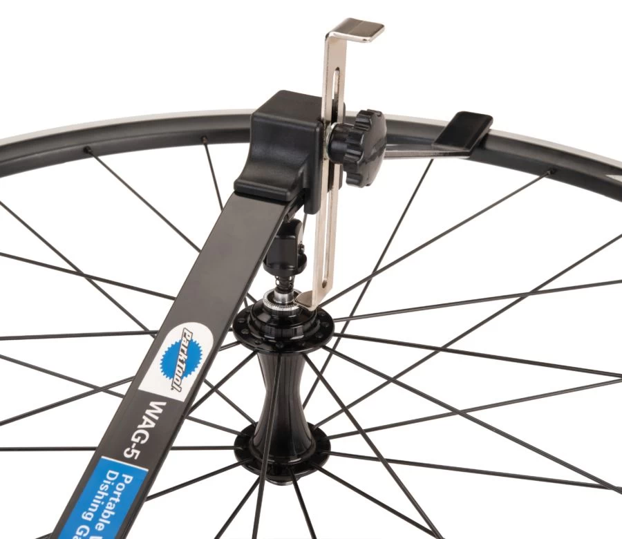 Om een wiel goed te laten presteren, is het belangrijk dat de velg gecentreerd is tussen de contramoeren van de naaf, of “schotel”. De WAG-5 meet nauwkeurig de schotel op 24 x 1⅜” tot 29″ wielen (ETRTO of ISO-maat van 547 tot 630). De WAG-5 kan snel worden gedemonteerd voor opslag of onderweg en werkt met alle soorten naven.