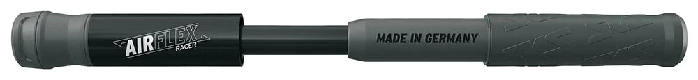 De Airflex Racer minipomp maakt pompen nog gemakkelijker. Het geheim zit onder de gripvaste stofkap: in de pompbuis zit een lange slang verborgen die je eruit kunt trekken en luchtdicht op een SV ventiel kunt schroeven. Je kunt ermee pompen tot maximaal 8 bar.