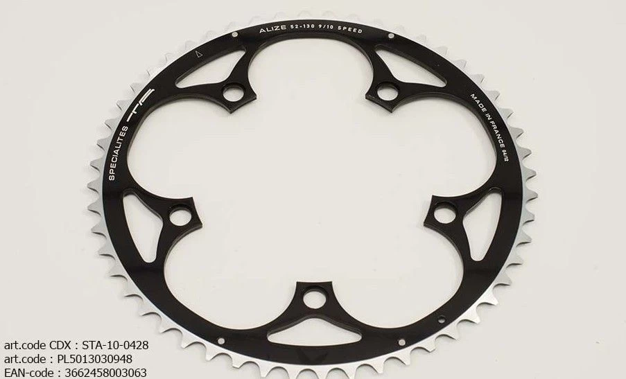 TA Specialites Alize kettingblad speciaal voor Shimano en Sram 9/10-speed cranksets. Een goed en slijtvast alternatief voor de originele bladen. TA maakt haar kettingbladen van het beste 7075 T6 aluminium. De tanden worden gefreesd op traditionele wijze op een draaibank die een veel betere en nauwkeurigere tandvorm maakt dan de meeste andere fabrikanten